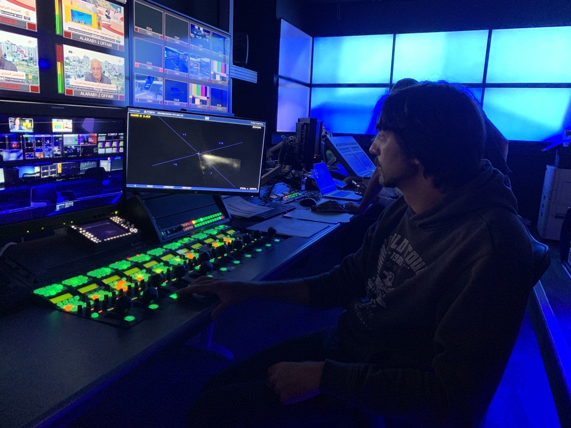 The Team of Directors, Vision Mixers, Cameramen, Crane Operators, self shooting cameramen, Sound Operators, Vision Engineers, CCU Operators, Lighting, Gaffers, D.O.P, VT Operators, Graphic Designers, Graphic Operators, Auto-Cue Operators, Floor Managers, Video Editors, Hair Stylists and Make-up Artists are all with a very highly experience in Television broadcast and all kind of productions from Voice Over to filming packages and lives.